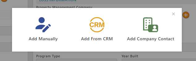 Insurance information can be added from the CRM utilizing the drop downs or added to the CRM by using the yellow plus buttons
