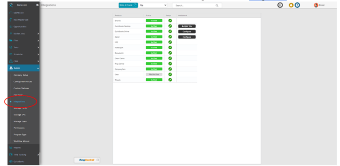 https://encircleapp.zendesk.com/hc/en-us/articles/360051960511-Creating-a-Bearer-Token-for-API-Integration - Once completed in an alternative tab open Xcelerate and navigate to Admin>Integrations