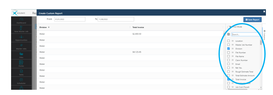 There are a vast number of reports that can be created utilizing this tool. Much like the file view, you can customize the columns and data that show within the report with the menu on the left.