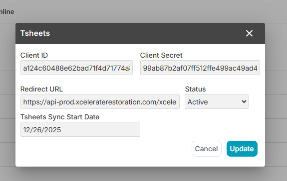 Instructions to Integrate Xcelerate & Tsheets (Updated 2/12/2026)